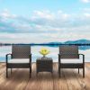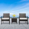 2pcs Arm Chairs 1pc Coffee Table, 3pcs Rattan Sofa Set Brown Gradient XH