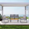 Elevate your outdoor lounging experience with our 4 Piece Outdoor Patio Lounge Conversation Set. This set combines the modern durability of a metal frame with the natural elegance of acacia wood, creating a stylish and comfortable outdoor living space. Perfect for backyard gatherings, balcony relaxation, or deck enjoyment, this set includes spacious seating with soft, thick cushions for ultimate comfort and a solid wood tabletop for convenience and style. The water-repellent cushion covers and easy-to-clean tabletop ensure maintenance is a breeze, making this set a practical choice for any outdoor setting.