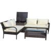 4 Piece Patio Sectional Wicker Rattan Outdoor Furniture Sofa Set with Storage Box Brown