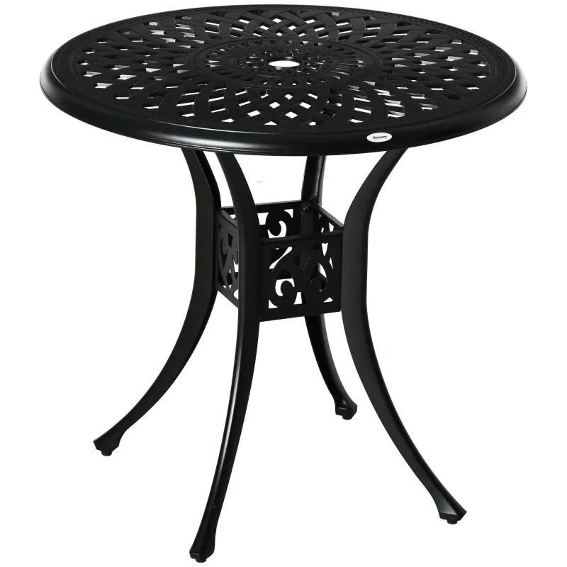 Add classic beauty, style, and grace to your backyard dining with this Outsunny outdoor table with umbrella hole. Grab a few of our chairs and enjoy sitting outside in the sun while having a place to sit down with your drink or your favorite book. Chit-chat with friends and family and enjoy a meal with this outdoor dining table. Bring more style and functionality to your backyard, patio, or deck with this Outsunny round outdoor dining table.