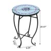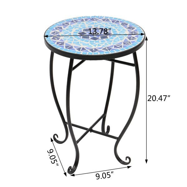This is an adorable accent table for your patio, porch, balcony etc. This series of mosaic tables all have beautiful colors and great texture, great for either indoor and outdoor use, especially for any beach theme home decor or use by a nice clean pool. It has a smart size to be placed at any small spaces like on the corner of your porch. It won't take much space. The metal construction with mosaic table top make this table sturdy and attractive. This accent table can be also used for your outdoor plants to beautify your space. You can also use it your living room. It is easy to move around and can be used as an accent table for your dinner parties. This table is just versatile, pretty and sturdy.