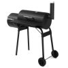 Barrel Charcoal Grill with Offset Smoker, All Metal Outdoor Smoker with Side Table and Wheels for Outdoor Garden Patio and Backyard Cooking