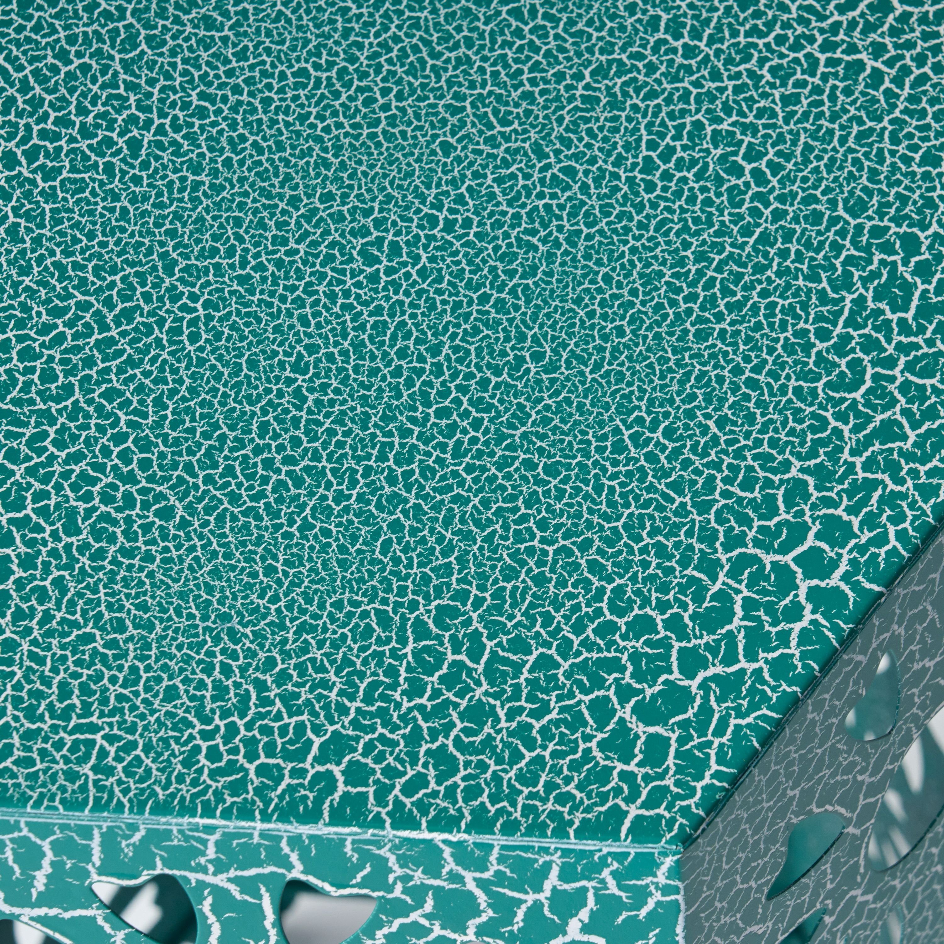 Material: Iron Tubing , Finish available in: Crackle Teal, Crackle Blue, or Crackle Green