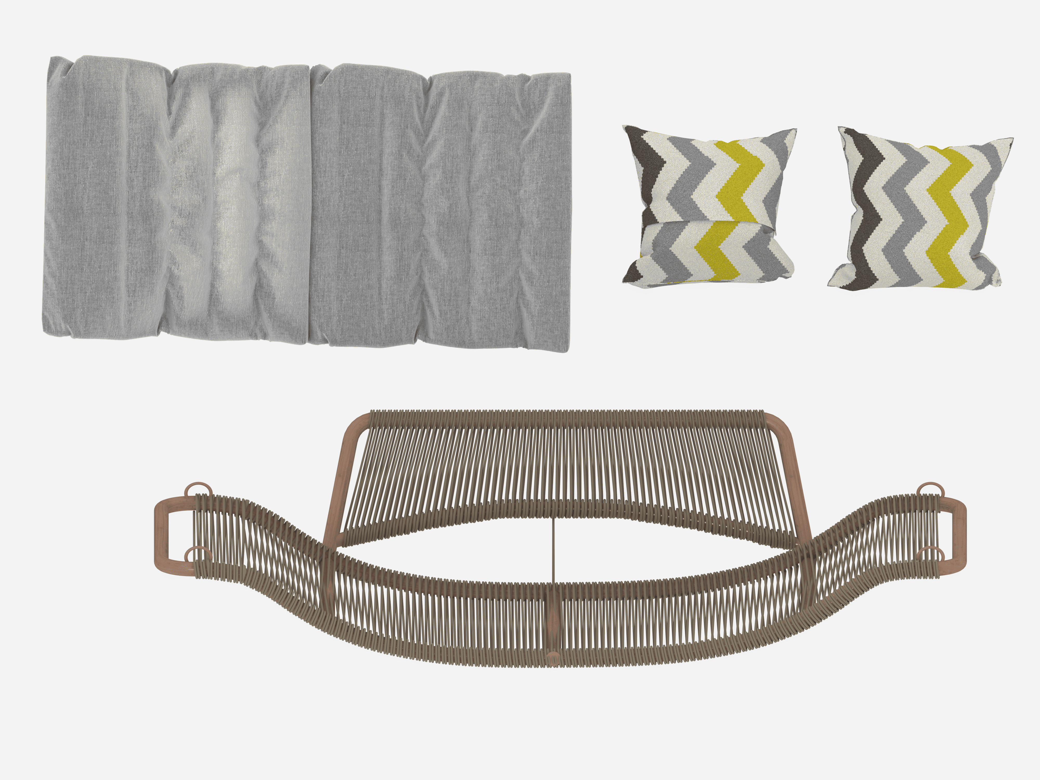 2.Stable and Durable -Triangle bracket structure, sturdy and stable; Alloy frame, high corrosion resistance paint film, imitation wood grain surface, both durable and beautiful, fearless of sun and rain; PE wire rope woven rattan, with strong elasticity and not easy to fade; And paired with high load-bearing crane ropes, stable swinging, safe and silent.
