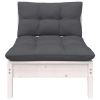 Patio Middle Sofa with Cushions White Solid Pinewood