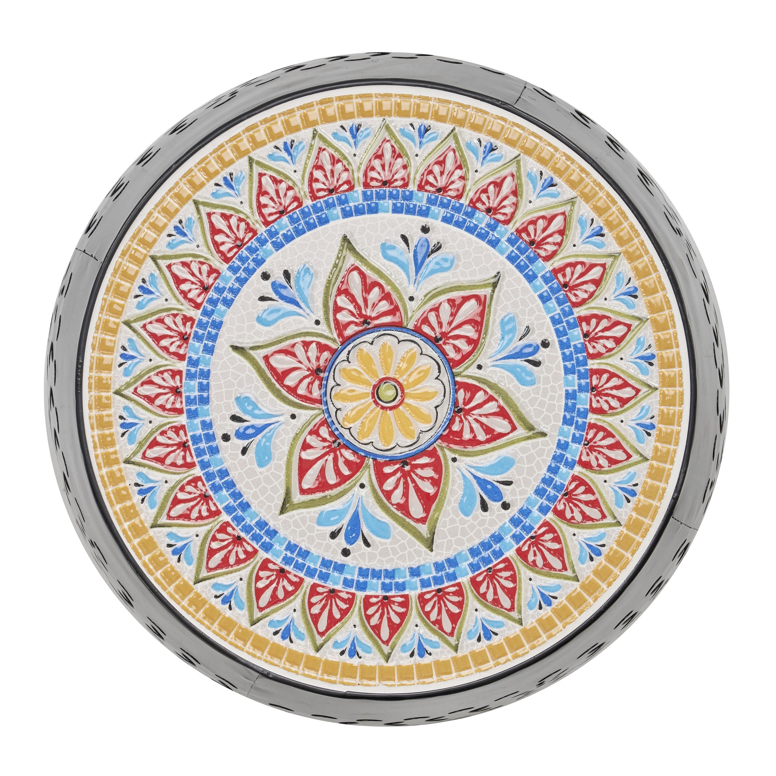 VIBRANT ACCENT TABLE: This mosaic side table by adds a splash of vividness to your space with its a boho pattern ceramic tile top and unique color iron frame; it offers style and durability as an accent table indoors or outdoors