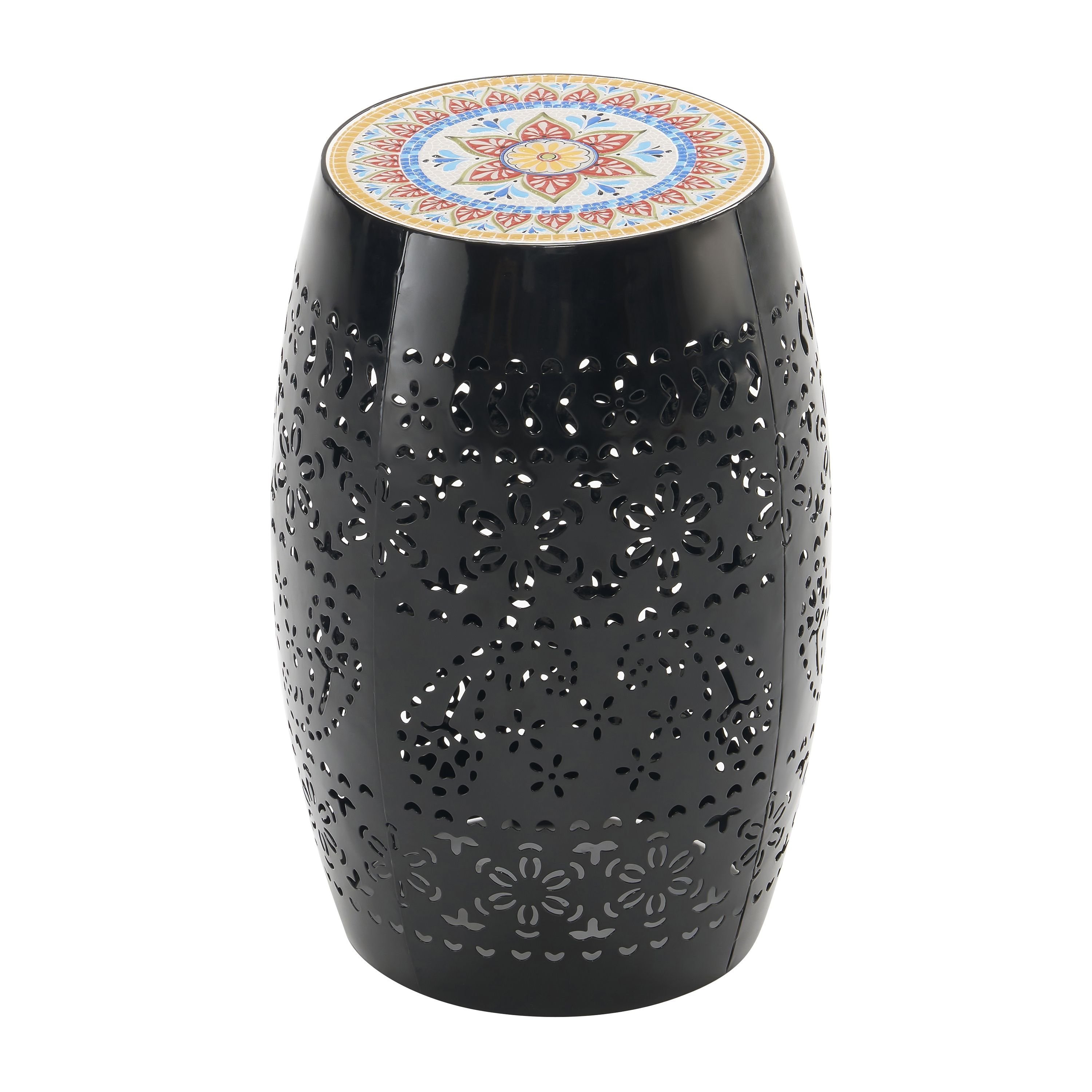 FUNCTIONAL ART:This 12.25" wide by 18.25" high mosaic side table is the right height for snacks, beverages, and plants. Weight Capacity: 10.2lb.Combination of a boho pattern ceramic tile top with an elegant and unique cut-out pattern metal frame, blending with any room decor from boho to modern minimalism.