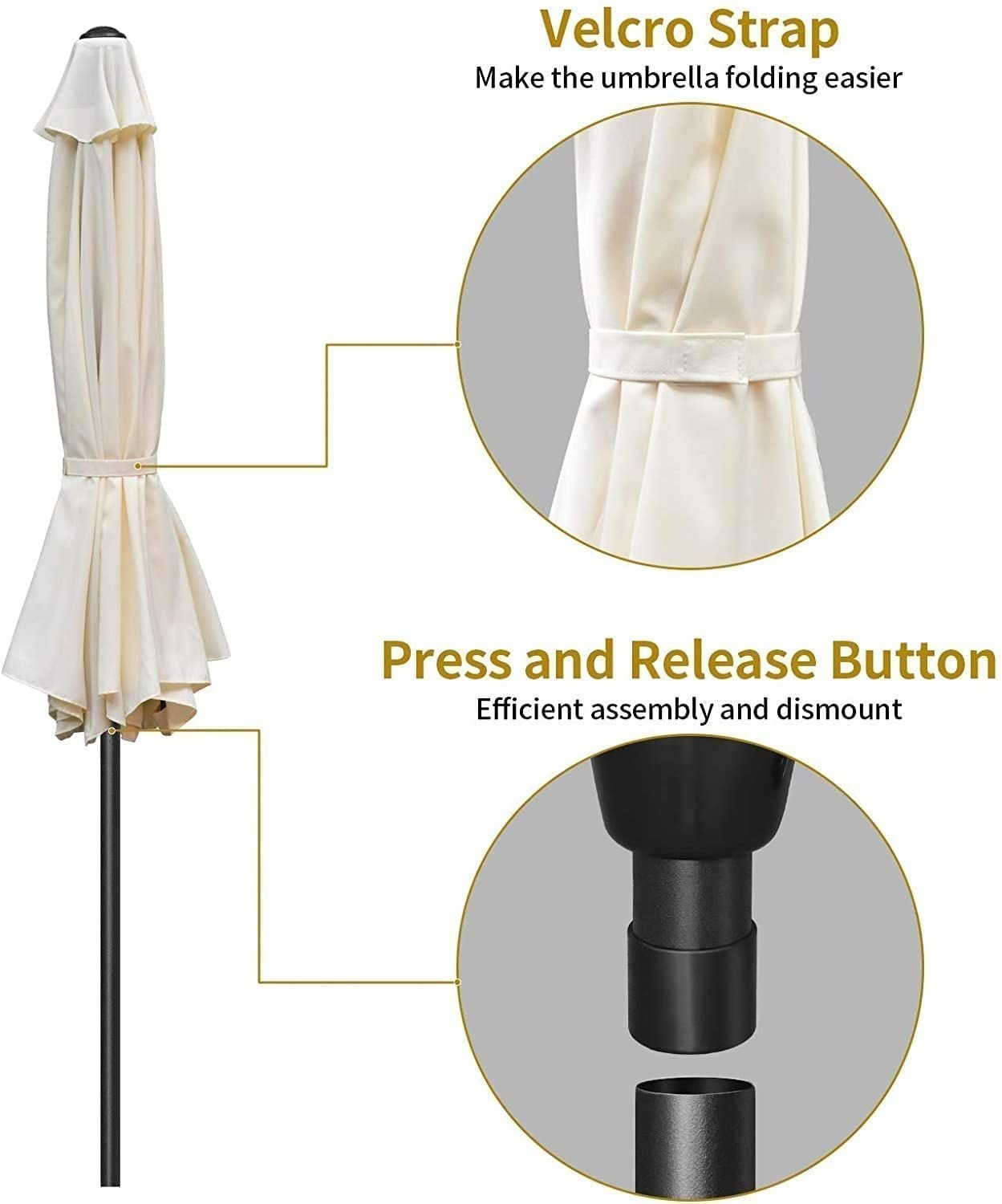 High-quality & durable material: The patio umbrella fabric is made of 100% polyester. High-density polyester is water & UV resistant. This outdoor table market umbrella has high elasticity, firmness and durability