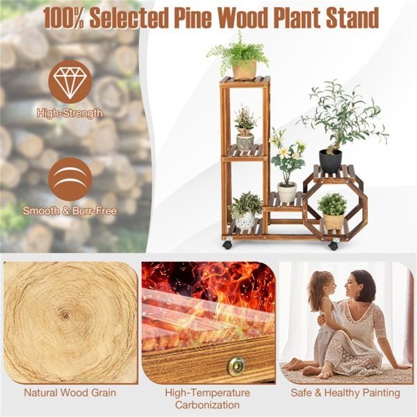 ● Solid Pine Wood: The wooden plant stand is crafted with 100% selected pine wood, which is characterized by high strength, deformation resistance, and great sturdiness. Moreover, it boasts a high-temperature carbonization process, which can prevent fading, shrinking, warping, or cracking, ensuring long service life.